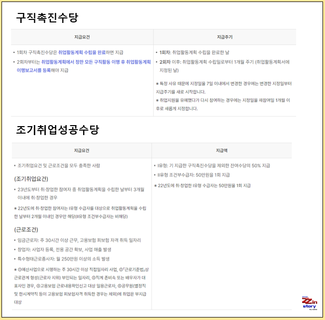- 조기취업성공수당: 국민취업지원제도 수급자의 신속한 조기취업을 유도하기 위하여 지급하는 수당