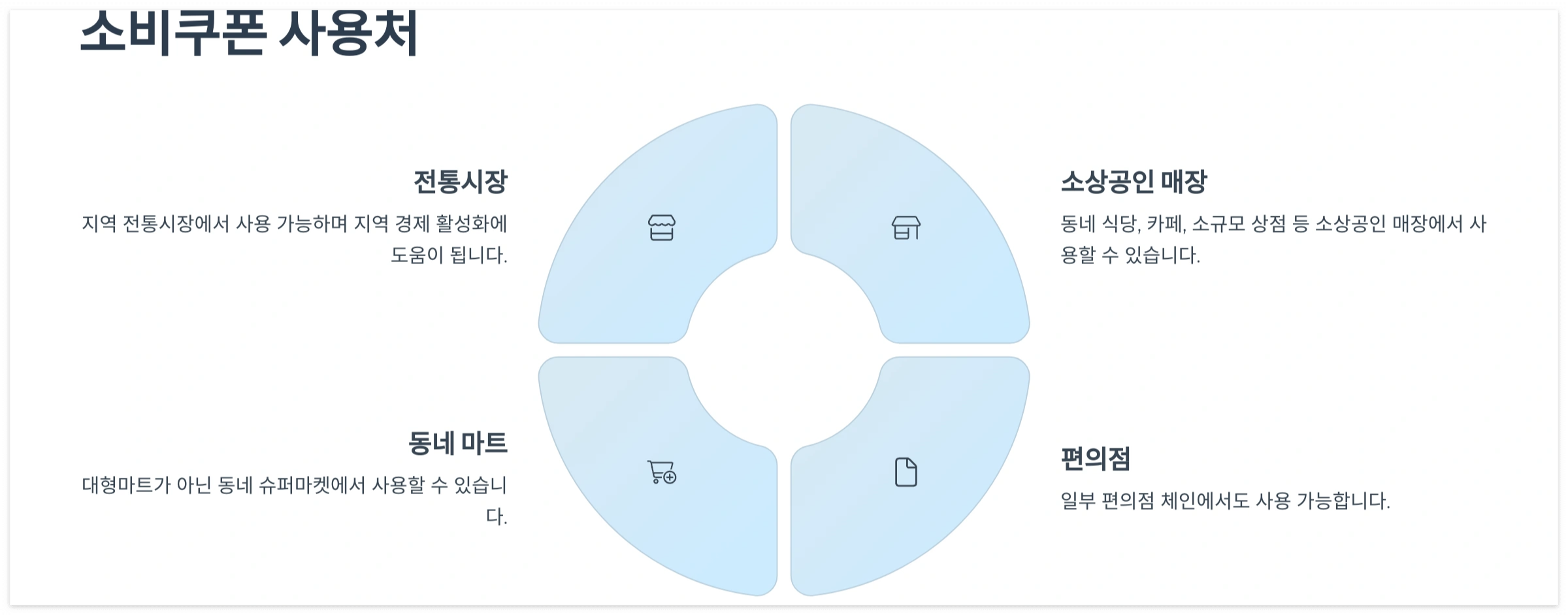 지급받은 소비쿠폰은 전통시장, 소상공인 매장, 일부 편의점 및 마트에서 사용할 수 있어요. 하지만 대형마트나 온라인 쇼핑몰에서는 사용이 제한될 수 있으니, 미리 사용처 리스트를 확인하고 사용하는 것이 실속 있게 혜택을 누릴 수 있는 길이에요 🛍